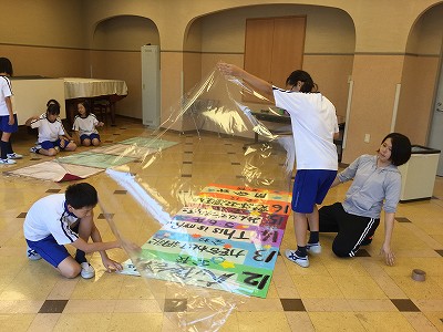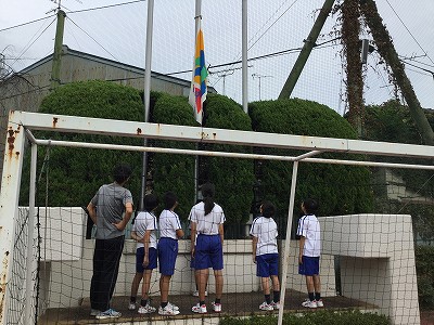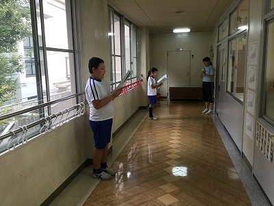 運動会まであと少し。今日の6校時は、5・6年生による2回目の係活動日です。各係の様子をお伝えします。[本部プランニングメンバー係]が、児童会旗掲揚の練習をしています。