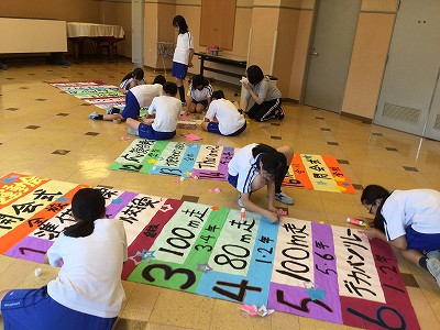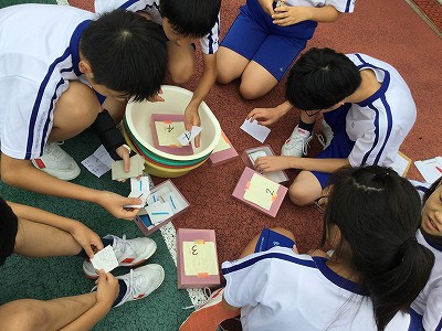 徒競走の着順カードを整理し、本番と同じように渡す練習をするとのこと。