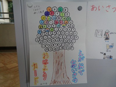 あいさつ係さん手作りの「あいさつの木」。