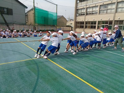全校体育の様子です。「玉入れ」「つな引き」「リレー」「応援合戦」の練習をしました。