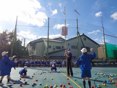 2時間目は、玉入れの練習です。久しぶりの玉入れで、気合い十分!