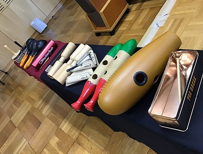 次の時間に向けて、音楽室の“リズム楽器”を紹介しています。