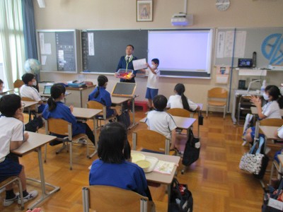 給食の時間ですが、児童会本部役員が球技大会の賞状とホームラン賞のメダルを届けてくれました。