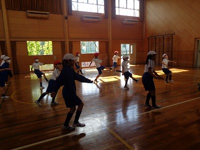 体育の時間は、今週からクラスで発表するダンスにチャレンジしています。曲名は「You can do it!!!!!」、頑張る4年生の背中を押してくれる、学年目標にぴったりの曲です。まだまだ振りを覚えるのに精一杯ではありますが、スピードのあるリズムにのって楽しく踊ってくれました。早いリズムで1曲を踊り終わった後は、みんな疲れ切った様子でした。