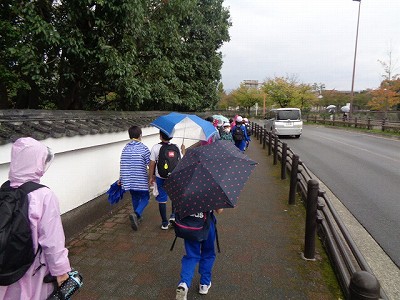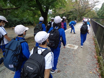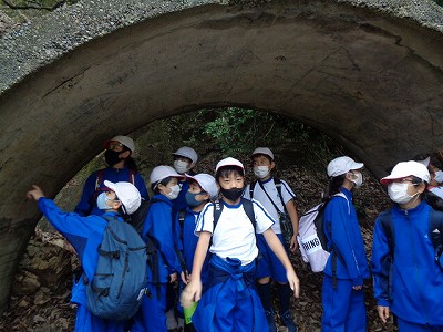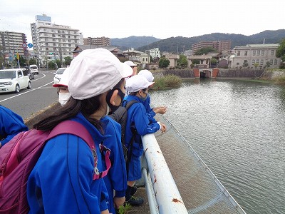 取水口をスタートに、いよいよ疏水を辿って学校へと向かいます。「電車に乗ってきたここまでの道のりを、すべて歩いて帰るよ!」と言うと、「えーーーーーー!」と驚きの悲鳴が上がっていました。
