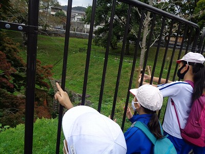 京津線を乗り換え『三井寺駅』に降りた4年生。明治の大事業『琵琶湖疏水』をたどる遠足の始まりです。疏水のスタートである取水口に向かいます!