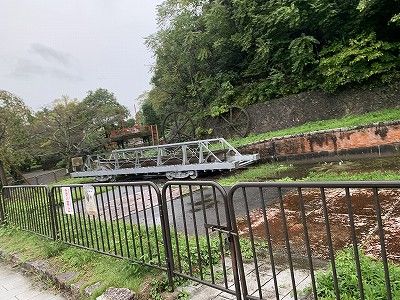 浄水場を背に、山手に上がっていくと、“インクライン”に出会いました。建設の関係で、どうしても段差が発生します。その課題を解消するため、水力発電で生まれた電力を使って、線路を敷いた上に台車を走らせ、舟を水路に乗せる仕組みを思い出すことができました。