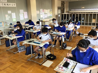 今日は、2学期初めてのお習字に取り組みました。一心に筆に集中する空気感が、大変さわやかに感じました。次回に向け、筆洗い→乾燥→持参をお忘れなく!