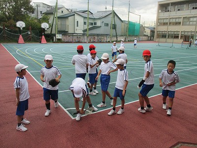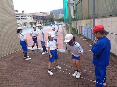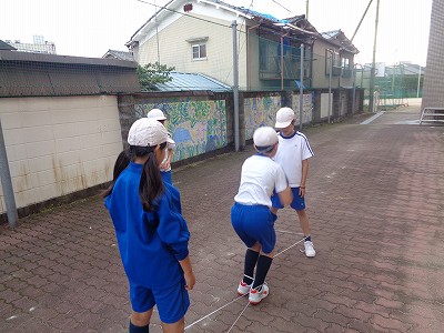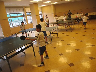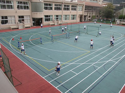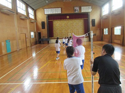 前半は、学年ごとに分かれ、ラリーの練習を行いました。