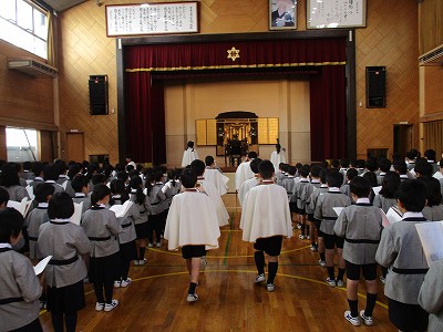 文教キッズは、楽しい時は大いに楽しみ、礼拝時の合掌時には静かに落ち着き、けじめを意識しています。