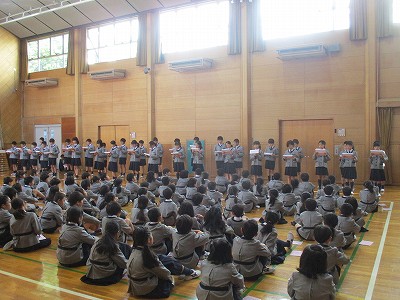 校長先生は「ごみが落ちていると、気付いた人がさっと拾えるなど、気が付いたことができる子ども達でいっぱいの学校にしましょう。」と言葉を締めくくられました。