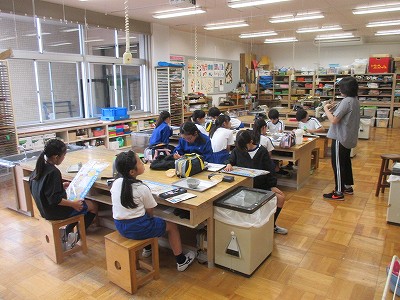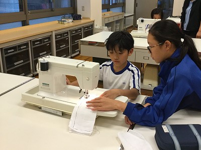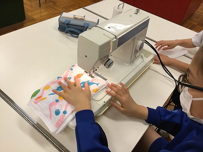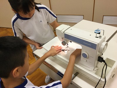 こちらは、ミシンがちょうどあいたので、5年生が4年生をリードしてくれています。