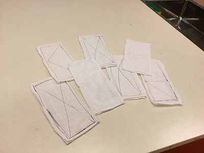 続々と“台ふきん”が完成し、本日12枚がゴールでした。各教室に2枚ずつ配れそうです。