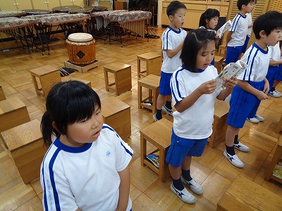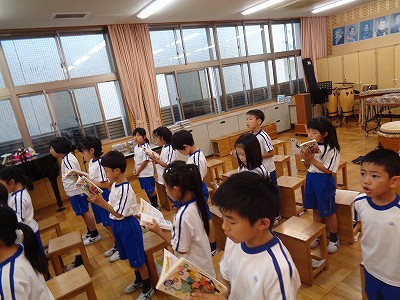『♪まっかな秋』は、最初の音を大切に顔を上げて歌い上げていました。