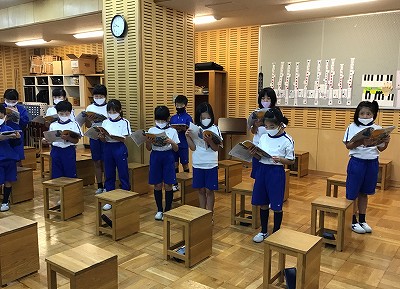 「上のパートでも下のパートでもOKです!」と心強い3年キッズの意欲が、歌声に表れるようにひびかせています。