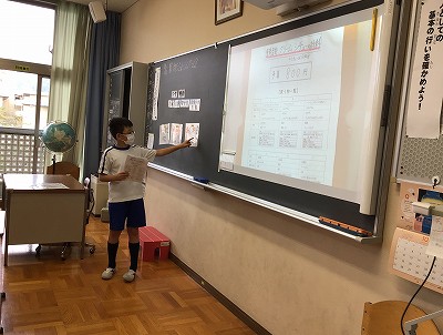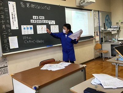 品質や安全性、個数(分量)などをポイントに、チームで意見交換したことをクラス全体にプレゼンする場面は緊張します。プレゼンの後には、チームの考えを後押しするように、聞いていた人から、付け足しの考えを発言してくれます。自信につながったことでしょう。 “エア”の買い物ですが、情報を生かして買うことの面白さ、大切さを理解してくれたことと思います。 ・・・・・・・・・・・・・・・・・・・・・・・・