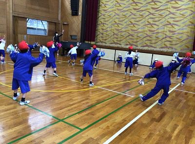 2年生との合同ダンス練習です。赤組・白組で半分に分かれてダンスをして、お互いに見合いっこをしました。