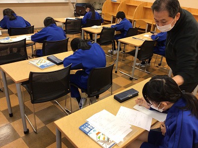 学習室組は、割合の問題も含めた学習プリントを解いています。