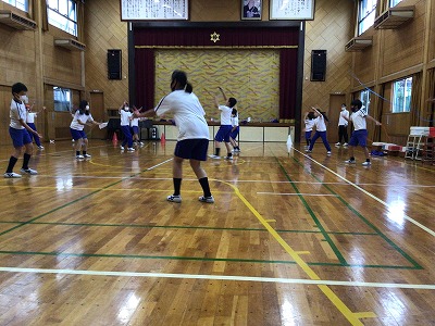 雨のため、グラウンドでの6年生との合同練習はかなわず、5年生単独の体育を行いました。