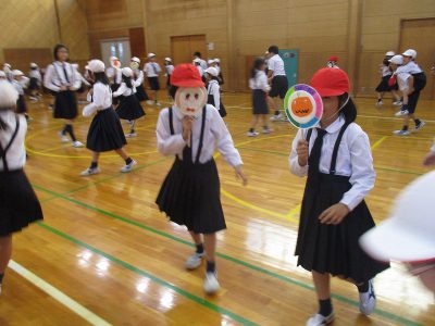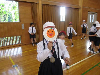 英語週間の時に作った「ハロウィンマスク」で、楽しみました。