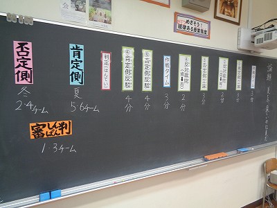 国語科では、ディベートゲームの流れやルールを学習しています。
