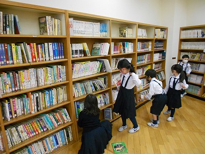 本の貸し出しの時間には、色々な棚を見て、本を選ぼうと呼びかけています。
