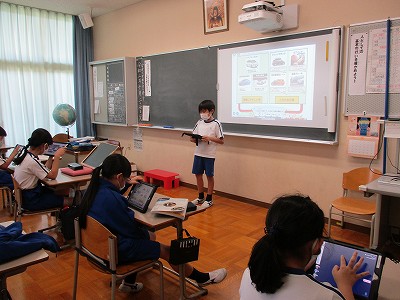 社会の時間は、自動車工業調べの発表会をしました。ロイロノートを巧みに使いながらの説明も、少しずつ身についてきました。