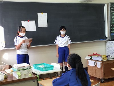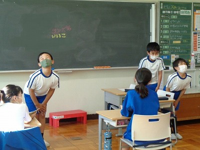 「しばらく歩くと」や、「右に曲がって」などの言葉が上がりますが、なかなか上手く案内することができない4年生。それぞれが自分の道案内を発表する中で、「2つめの角を~」や、「パン屋の右となりに~」など、具体的な言葉を使って案内することが大切だということに気づきました。