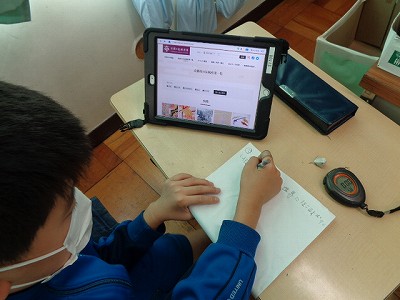 いよいよ、学習発表会に向けて発表の準備です。それぞれの調べた内容を、みんなに伝える練習を行います。発表用のスライドも、ロイロノートを使って自分で作っていきます。時間内に発表をするという難しさを知り、国語の学習で取り組んでいる「要約」の技術も役に立っています。