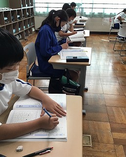 1校時の国語は、テキスト「ピラミッド」を進めました。漢字・言葉のページでは、辞典を開けて、正解につなげている姿が見られました。