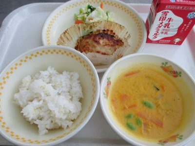 今日の献立は「とりのコンベクション焼き・水菜のサラダ・かぼちゃのスープ」でした。