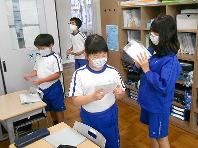 写真を受け取った後は、班長さんに、遠足のお礼や、昨日のスポーツフェスティバルの感想を伝えました。