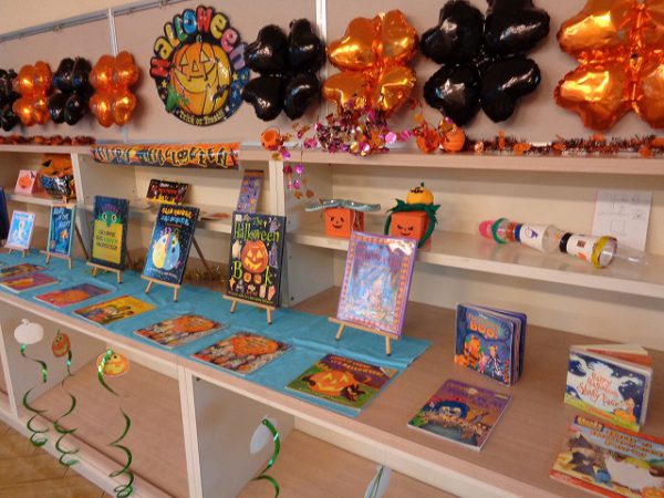 Next week is Halloween. On the second floor at school, there is now an autumn book display with several themed books about Halloween, thanksgiving, and autumn activities.
