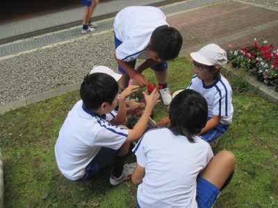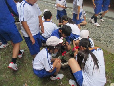 今日は、1班~10班がお昼休みに花の苗をプランターに植えかえました。