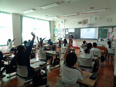 先週から行っている「You can do it!」のダンスを練習しました。だんだん身体も、リズムと動きになれてきたようで、よい笑顔で1曲を踊りきってくれました。来週からは、フォーメーションも変わり、まだまだ覚えることもたくさんですが、休み時間などもそれぞれによく練習し、リズムダンスを楽しんでいます。