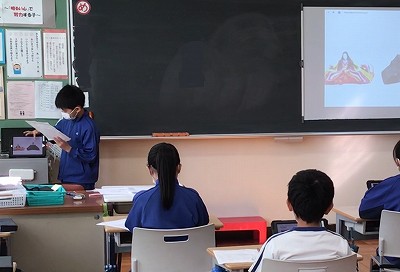 総合学習では、自分の調べた事をクラスの中で発表しました。それぞれが工夫したスライドを作成し、1分という短い時間で発表してくれました。うまく読めなかったり、スライドが動かせなかったりと、アクシデントもありましたが、全員が発表しきることができました。