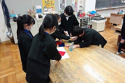 今週から新しい題材となりました。懐中電灯の光を使い、材料の組合わせ方や光の当て方を試しながら、おもしろい光やかげをつくる「造形遊び」の学習です。