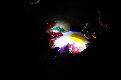 色セロハンが予想通り人気でした。これに光を通すだけで小さな歓声があがりました。