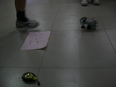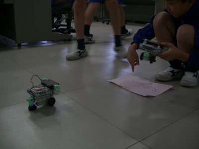 プログラミングクラブは、ロボットが、20秒でゴールに進むプログラムを作りました。