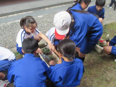 縦割りれんげ班での「花の苗植え活動3日目」です。