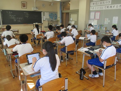 秋空が気持ちよい週明けです。今日も、学習の場面でグループの協力を生かして、活動することができました。