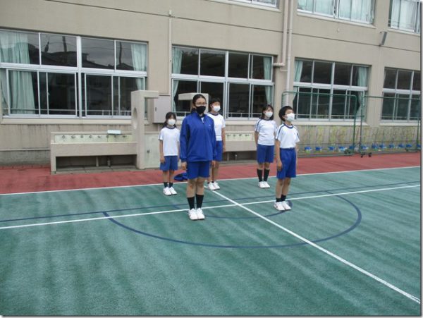 運動場では意外に声が響かないことにびっくり。教室で練習している声の1.5倍の声量が必要なことが今日の練習で分かりました。