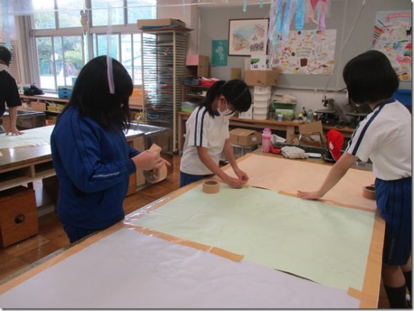 昼休みには、裏にガムテープを貼って、完成したプログラムが破れないように補強していました。