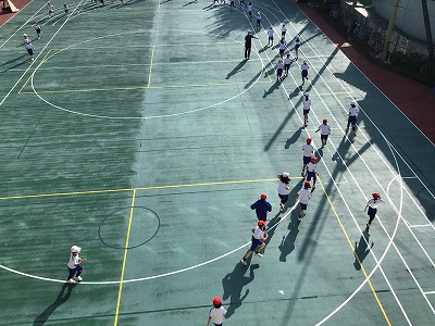 火曜の朝は“根っこマラソン”。今日は、中・高のグラウンドで体育祭が開かれているため、“マイグラウンド”を走りました。