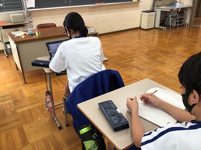タブレットで“秋の情景”を検索することや、“秋の季語”を調べ、できるだけ身近な話題を「五・七・五」の十七音に凝縮させようと取り組みました。