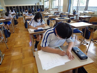 4時間目は、算数です。教室の習熟クラスは、10日後に行われる文教プレテストに向けて、過去のプレテスト問題に取り組みました。