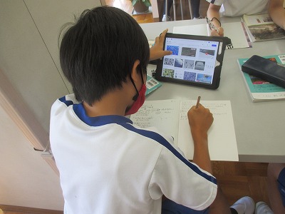 残り時間10分で、火山噴出物について、iPadを使い、調べ学習をしました。