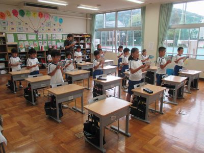 週末の土曜日ということもあってか、今日は欠席する児童も多く、明日からの2連休で体調を整えて、来週9日火曜日の運動会に備えてほしいと思います。