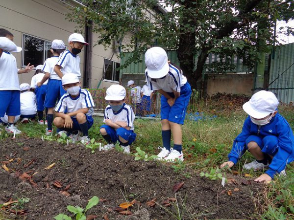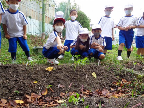 最後に学習園に出て、大根がどのくらい育っているかを見に行きました。