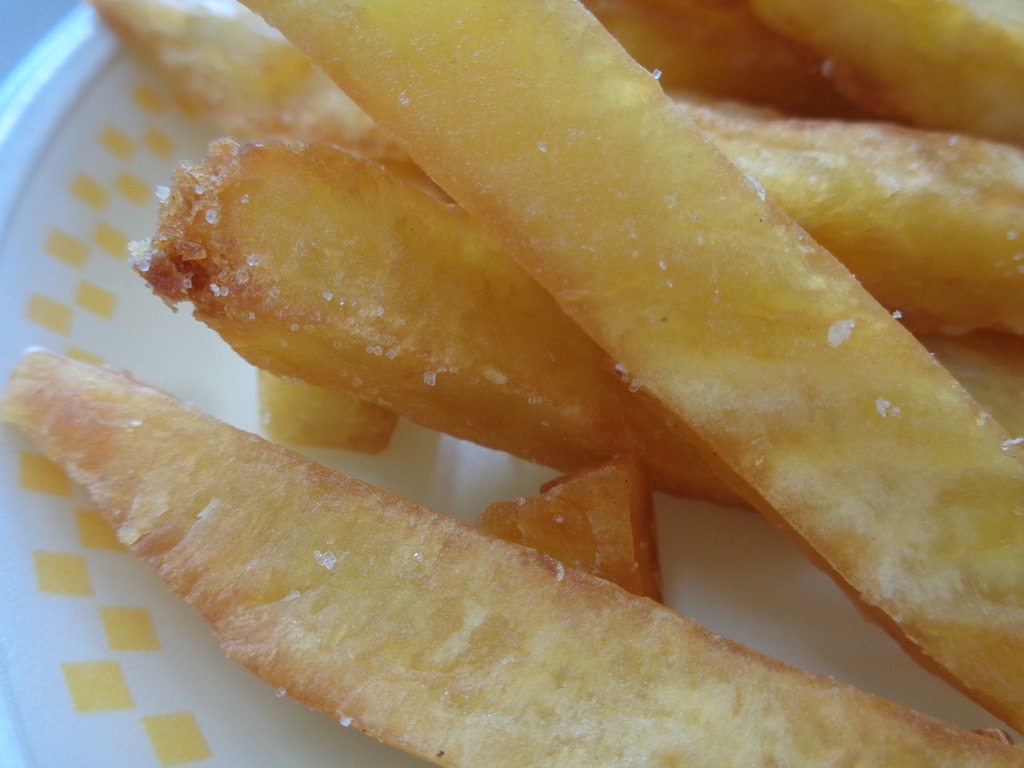 ☆ さつまいもはカリッと揚がるように二度揚げしています。